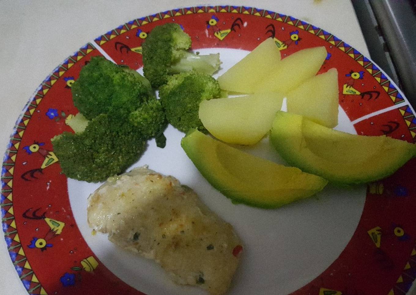 - Cortar los brócolis y pelar las papas. Poner en una olla y cocer con agua y sal. Después Pelar el aguacate y cortar en rebanadas.
