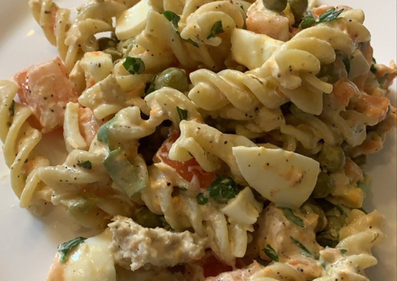 - Ponemos la pasta y el huevo a hervir. Mientras, picar la cebolla y el tomate, y mezclar con el atún, las zanahorias y los guisantes. Verter la pasta cuando esté cocida y el huevo troceado. Echar mayonesa al gusto, el perejil, la pimienta, la sal y remover todo. Meter en la nevera unos minutos y, ¡listo!