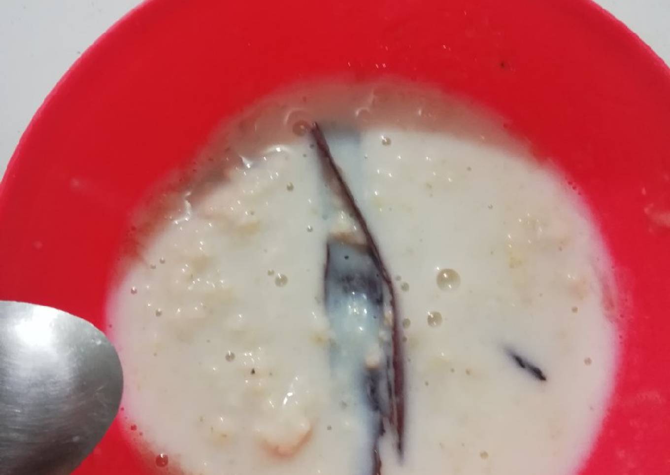 - Cuando la canela haya soltado su sabor, baja la llama de fuego y agrega el vaso de leche con avena que tenías reservado, ayúdate de una paleta de madera para revolver constantemente, agrega edulcorante / estevia. Y sigue revolviendo hasta que espese. Esto tardará aproximadamente 8min. Cuando haya burjujeado y este espeso, entonces apagas el fuego y dejas enfriar, para luego refrigerar y servir frío para cucharear.