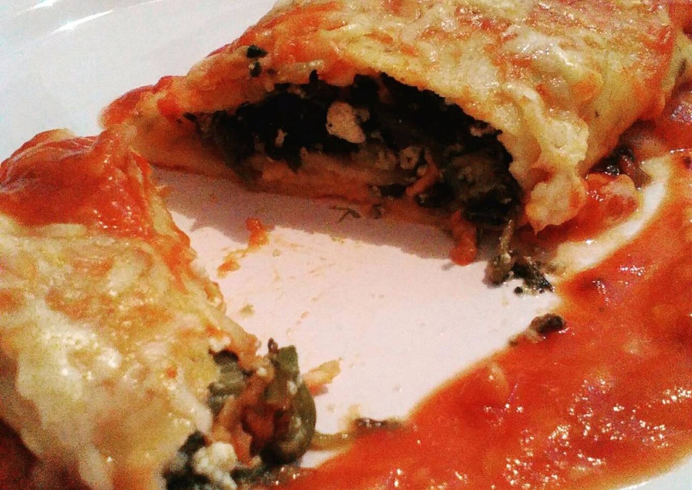- Por último, colocar el relleno en el crepe y dar la forma tradicional del canelón, o bien ir uniendo los extremos para luego darlo vuelta Y obtener el paquetito (a mi me encantan así, de esta manera no se escapa el relleno al servir). Ponerlos en recipiente para horno, colocar salsa roja, blanca o la que gusten, mucho queso por arriba para que gratine y hornear por 20' ó 25' a 170- 180 grados. Servir y a disfrutar 😆